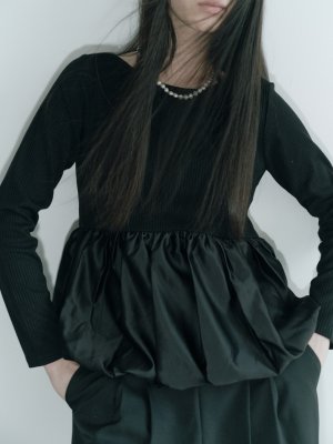 サイドスリットの中からはチュールフリルが見え隠れします。動く度に見え隠れするチュールがポイントのパンツです。