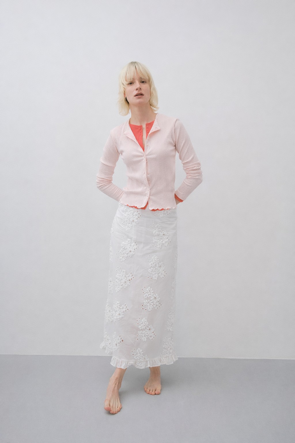 Floral Embroidery Cotton Long Skirt