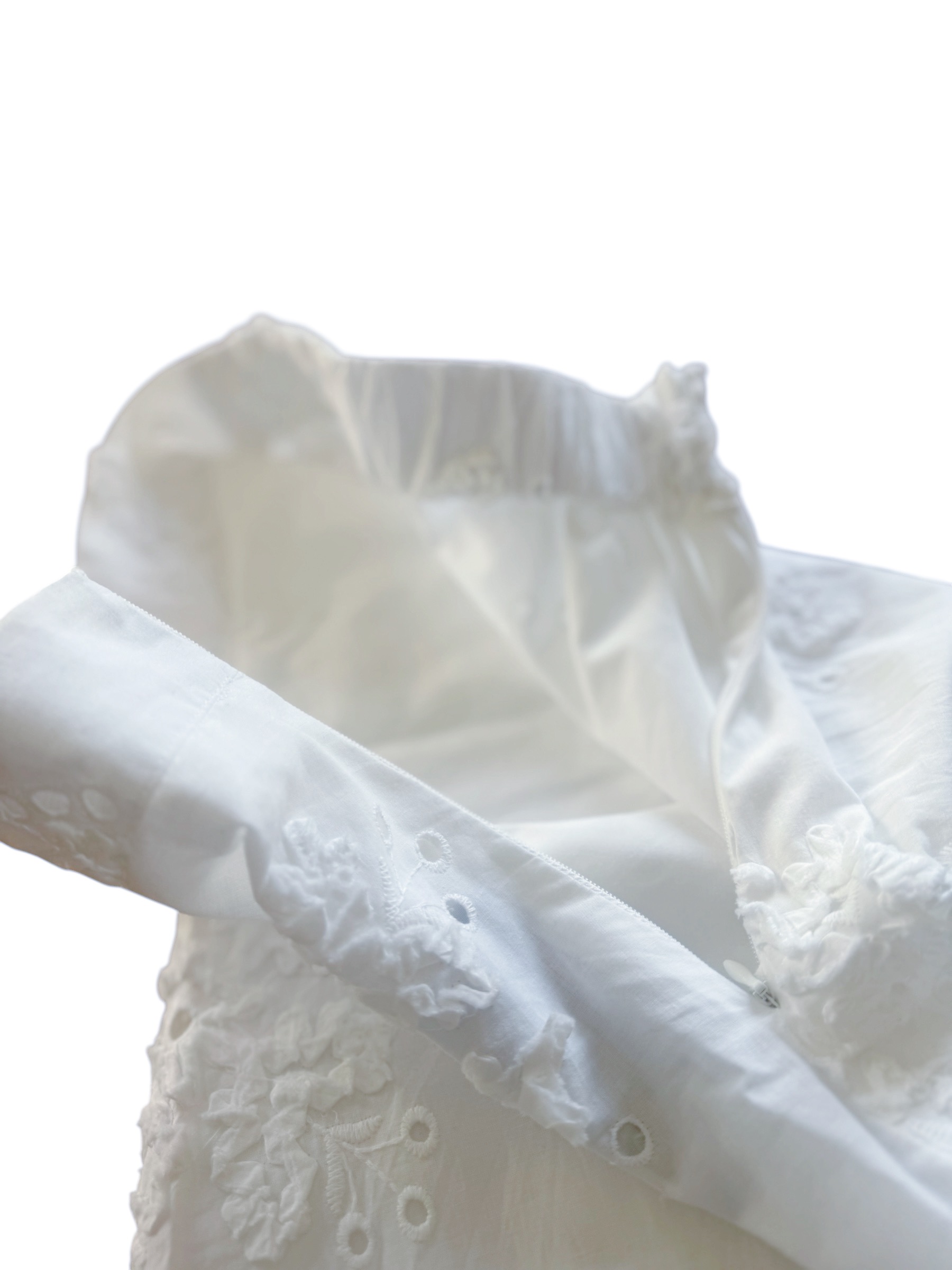 軽やかなコットン素材に、立体感のある花柄刺繍を贅沢に施し、