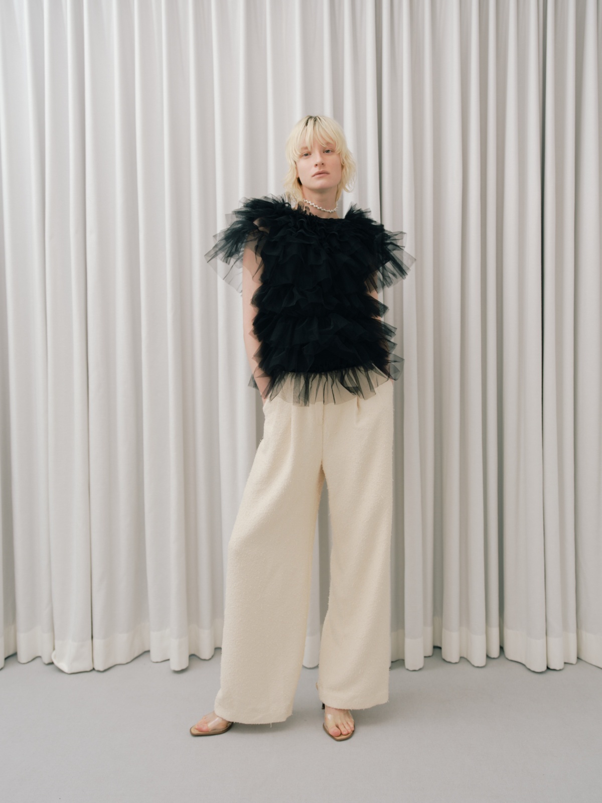 贅沢に重ねたチュールが目を惹く、存在感抜群のボリュームトップス。